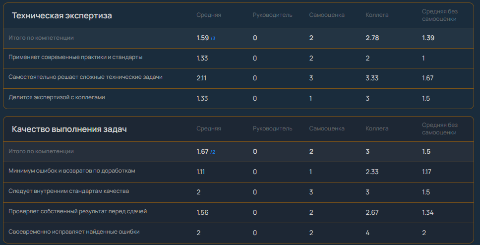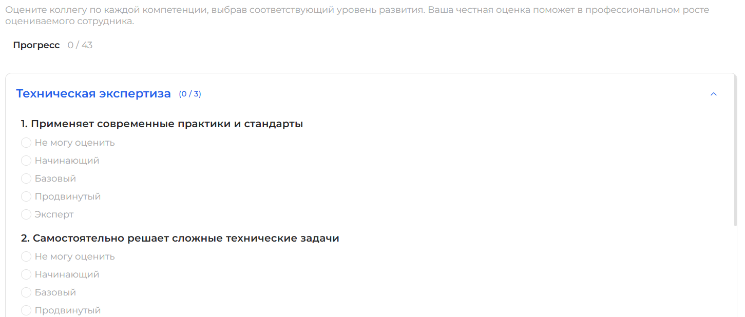 → Осознанные индивидуальные планы развития (ИПР) Результаты оценки становятся основой для ИПР: сотрудник понимает, какие навыки усиливать, а руководитель — как его поддержать. Развитие перестает быть абстрактным и превращается в конкретный план действий.